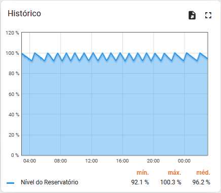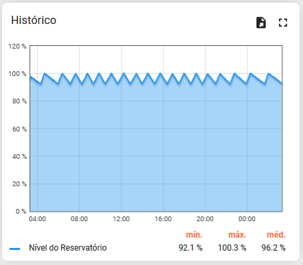 Mostram os valores recebidos dos equipamentos dentro de uma janela de tempo definida. Essa janela de tempo pode ser ajustada para exibir o período selecionado, veja o guia selecionar período para entender como ajustar o período.