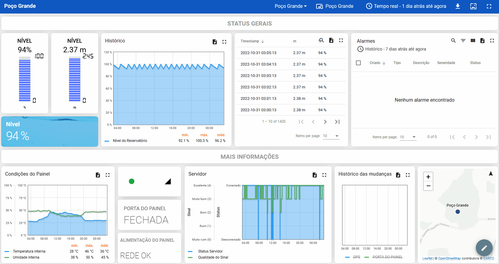 São as dashboards que reúnem as informações e dados que o equipamento está coletando. Normalmente cada local possui uma dashboard, reunindo todas as informações úteis daquele local.