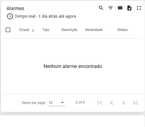 Os alarmes são exibidos na tabela de alarmes, mostrando sempre o evento mais recente primeiro.