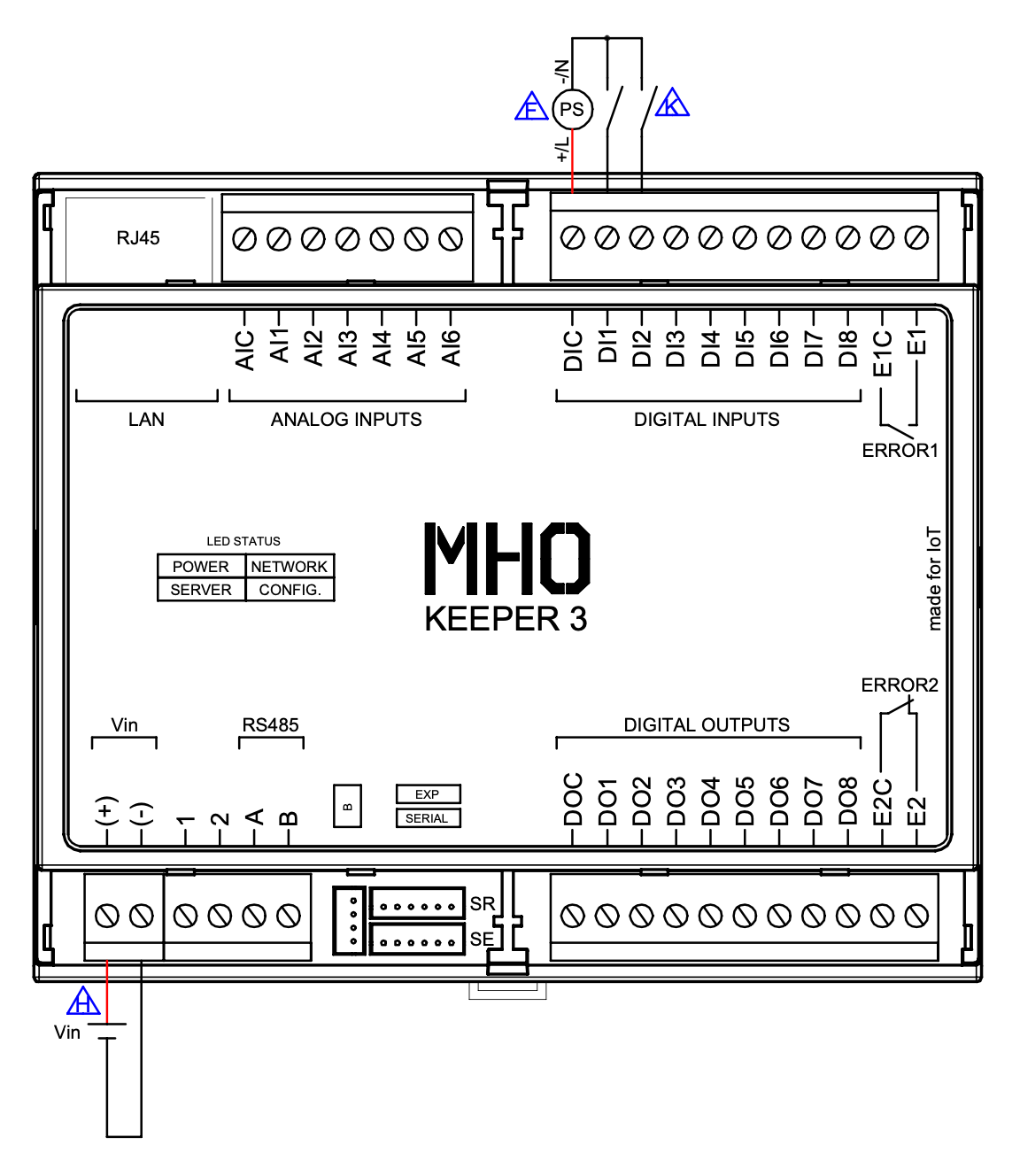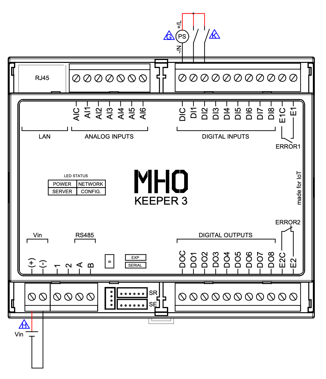 - Porta: Podemos ter uma entrada digital conectado a leitura de estado de um equipamento que nos indica se a porta está aberta ou fechada.