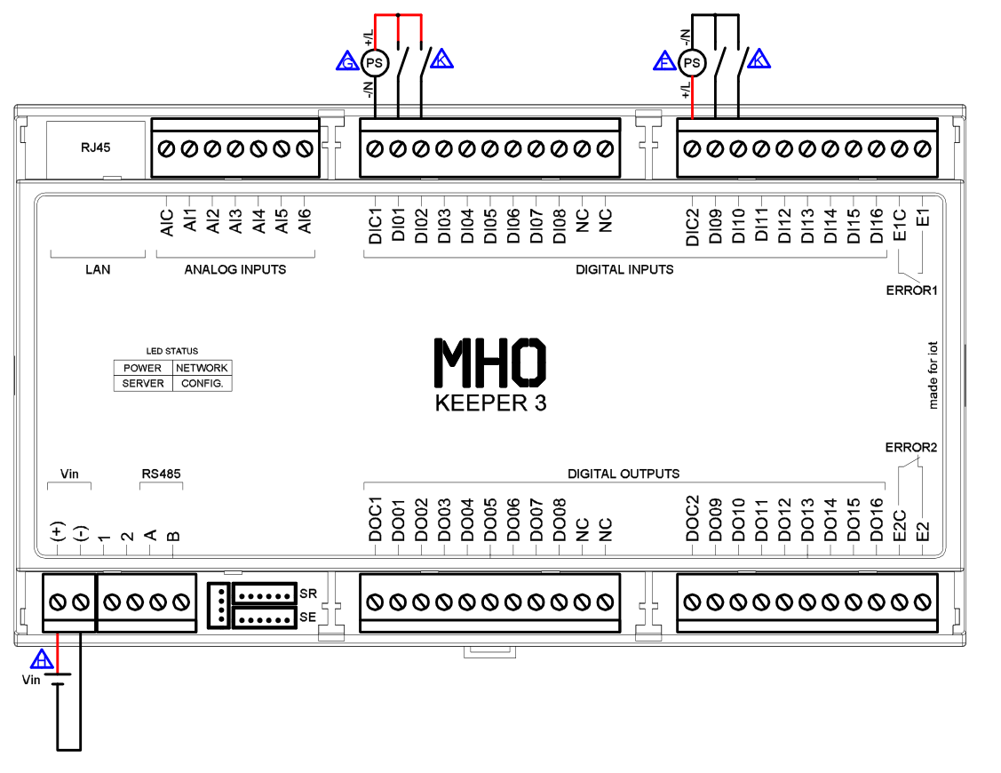 - Contato seco: Através de um contato seco o sinal é chaveado para a entrada digital.